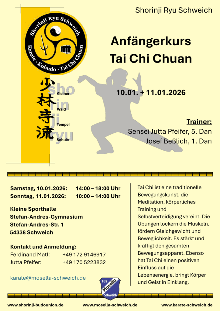 • Am 10.01. und 11.01.2026 Angfängerkurs Tai Chi Chuan